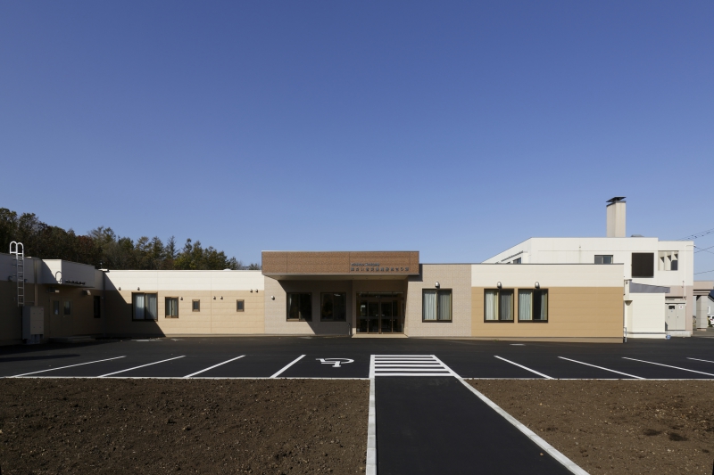 2015年から建設が行われてきた障害者支援施設あさひ荘の新棟が完成しました。新棟は鉄骨造平屋建て、延床面積は約2,374㎡で旧建物の約1.7倍の広さです。この新棟は幅広い利用者ニーズに対応できる機能の整備として、利用者の高齢化に配慮し、建物全体をバリアフリー化し、浴室に機械(介護)浴槽を設置すると共に、車いすや歩行器の使用を想定したゆとりある廊下幅と日中活動スペース(機能訓練作業室)を確保しました。