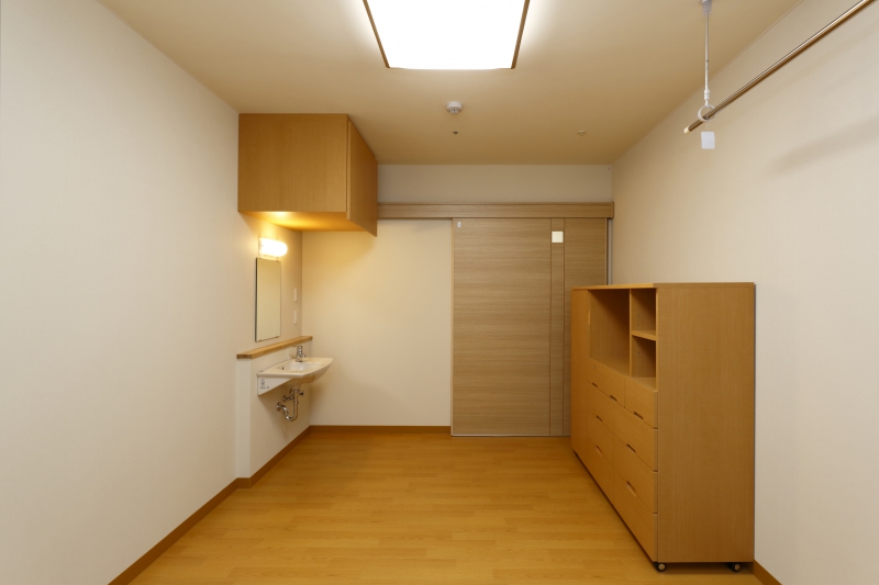 また、建替え前は2人部屋が中心でしたが、利用者特性に応じた支援とプライバシーの確保のため、短期入所者用の居室を含む全ての居室を個室化しました。なお、この新棟の完成により在宅障害者支援のための施設機能として、災害時に在宅の障害者の方を受入れる福祉避難所機能としても期待されるところです。